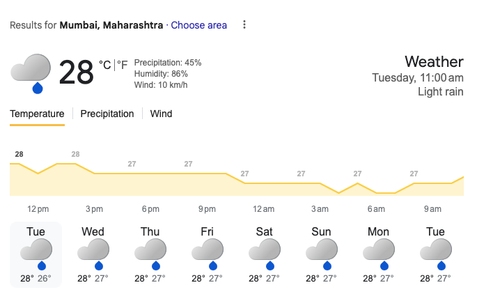 Right now, it is raining lightly to moderately in Mumbai. Looking out of the window early in the morning and seeing the raindrops gives a different kind of peace. The temperature is between 24°C to 28°C and there is a coolness in the air.